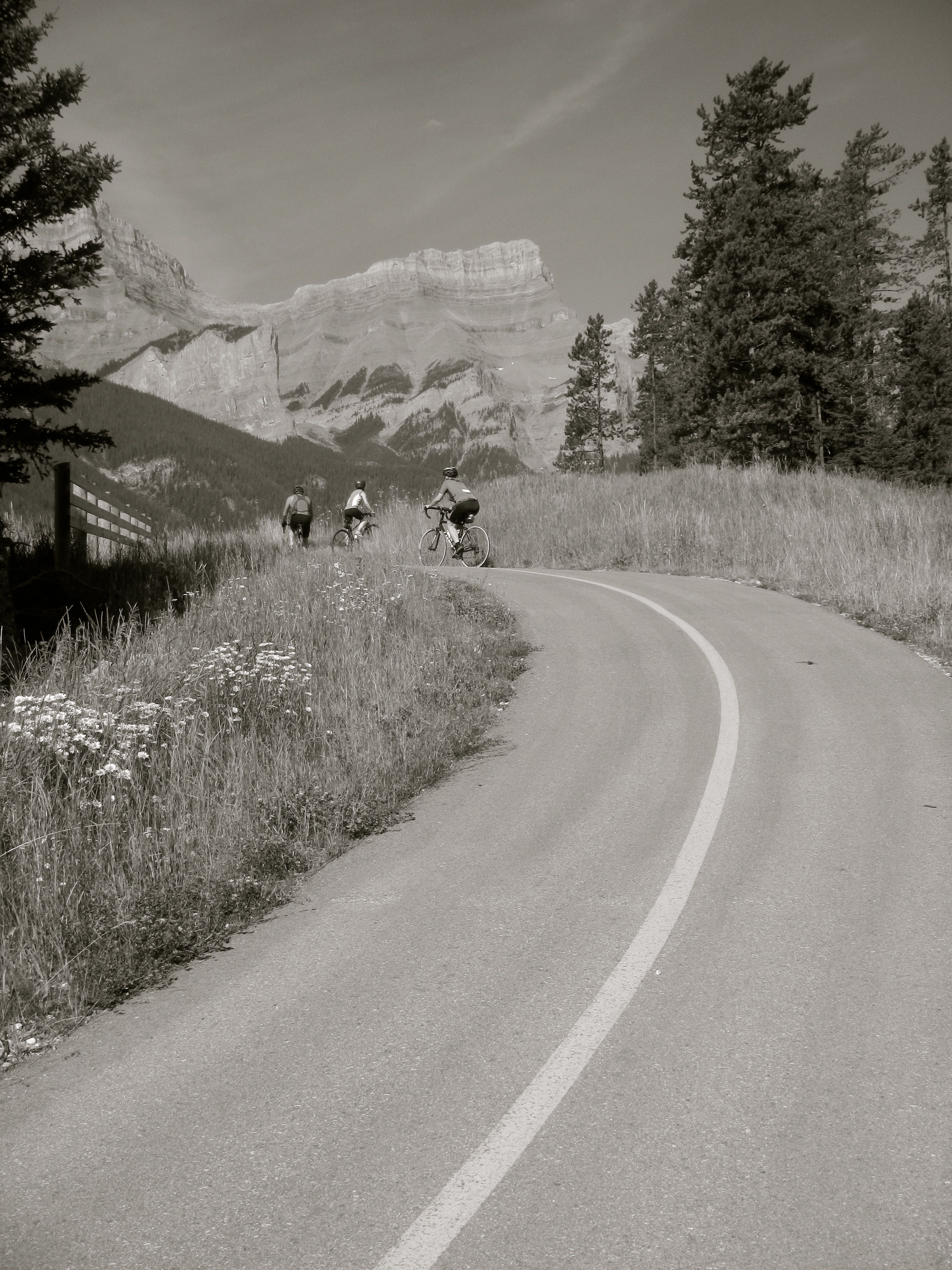 Just a quick glide down the hill links you to the “Legacy Trail”, a paved bike path that connects Canmore to Banff and has since successfully re-built some sections after the June floods.