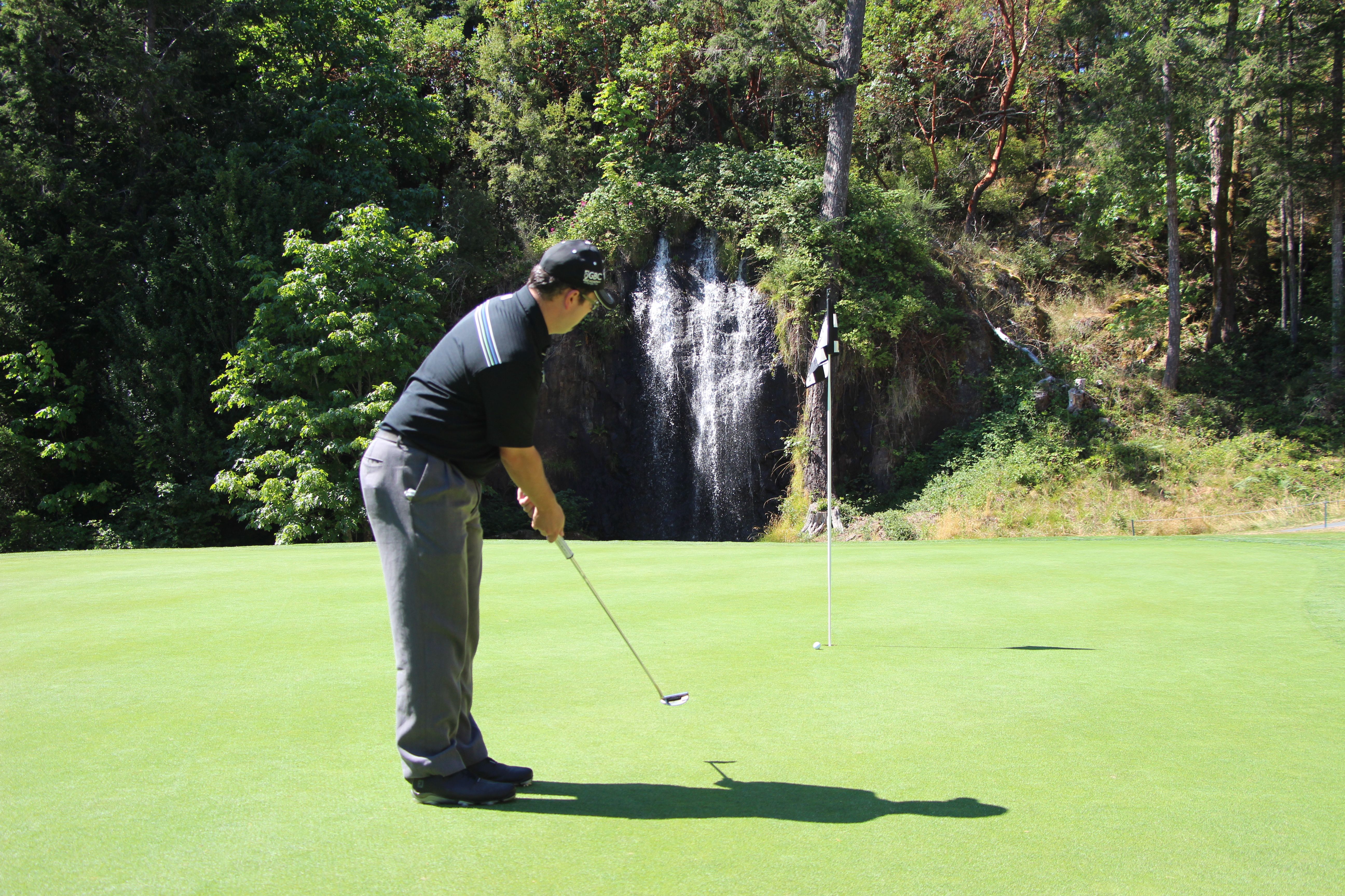 Olympic View’s course is beautiful, with varied landscapes, wildlife and amazing waterfall features. It was challenging, but certainly not beyond the skills of any golfer. I was able to put Jeff’s tips to use that same day – he’s a miracle worker!