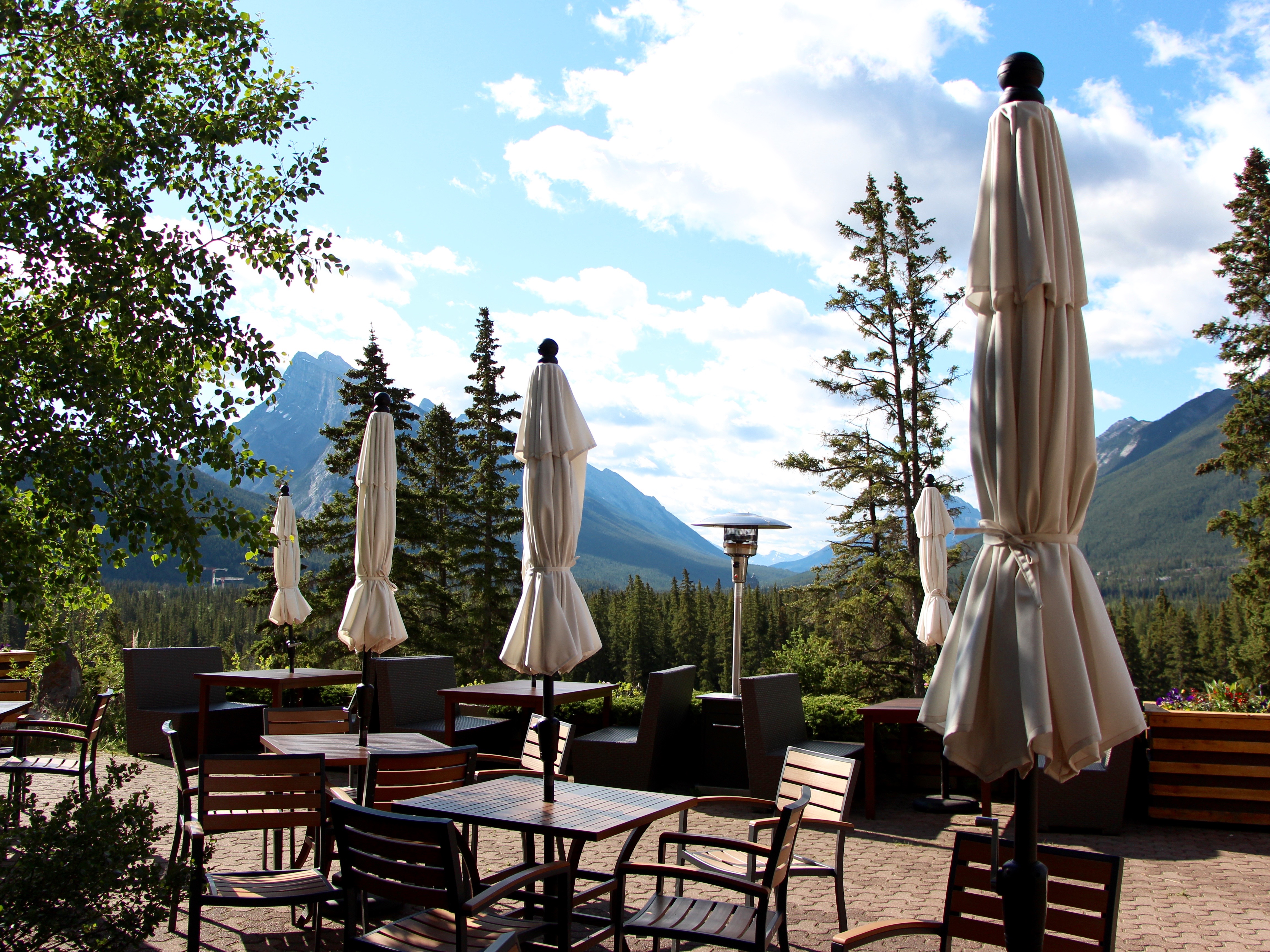 At the end of the day, reflect on the moments of your day on a sunny patio, like this one at the Juniper Hotel & Bistro, overlooking Banff.