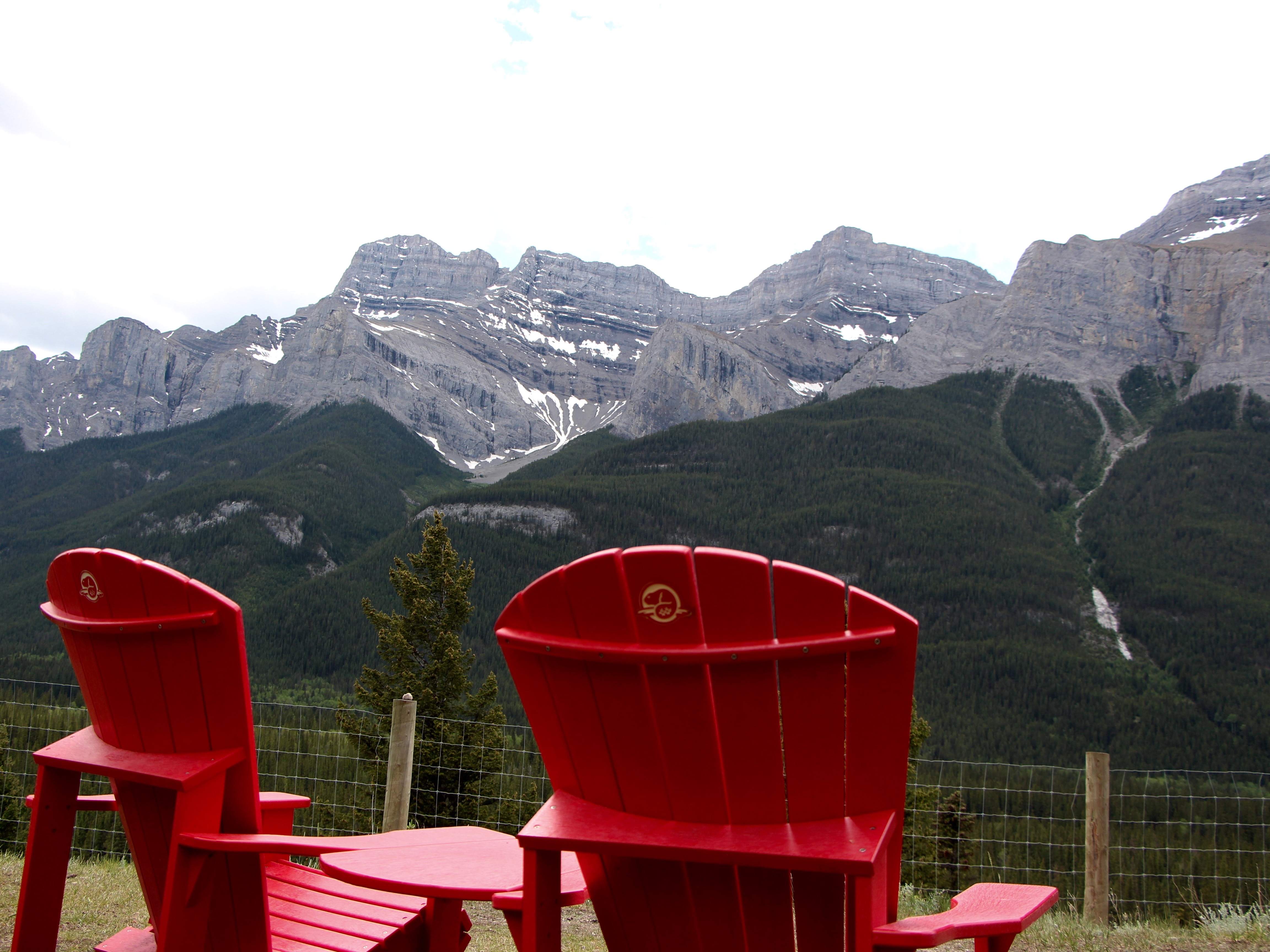 From here, you can gaze at the peaks to plot your next hike, enjoy an early morning cup of coffee, or watch the blue-green Bow river meander through the valley. Other chairs are located in welcome rest areas, like this one located partway between Canmore and Banff on the Legacy bike trail.